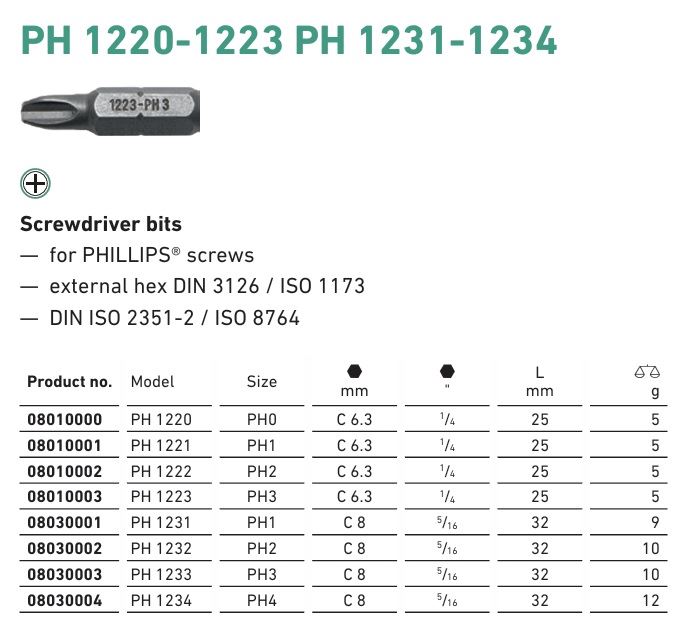 08010003 MOQ 50EA - PH1223 1/4" PH3 BITS FOR PHILLIPS SCREWS