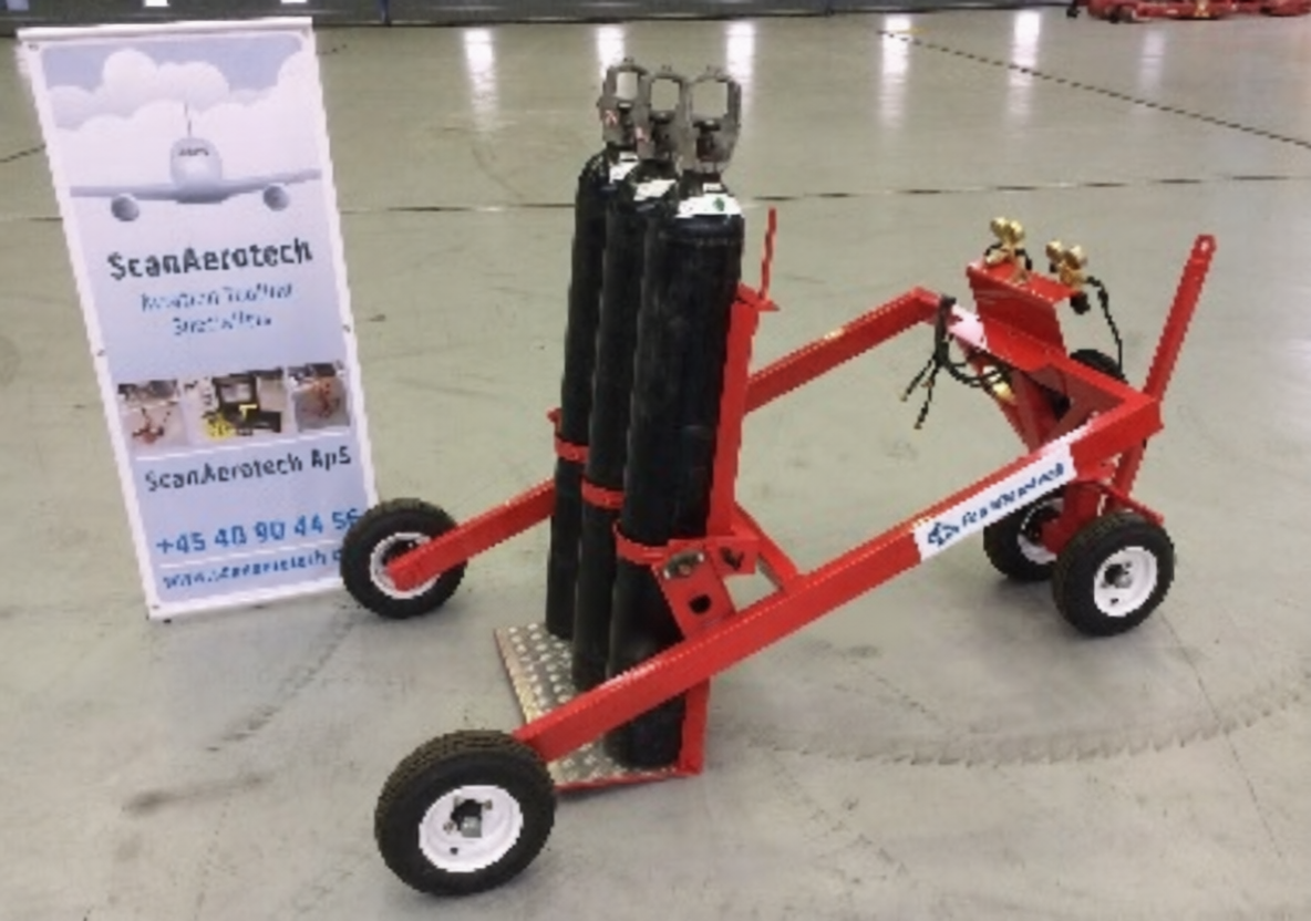 The Three Bottle TIP-Cart enables operators to vertically install the nitrogen bottles to the cart, before they can lower the entire frame to a 45deg. angle.